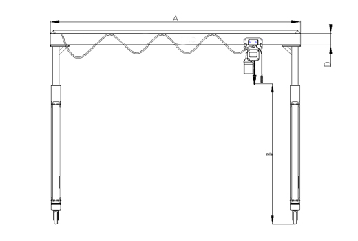 | 型號 | 額定載重(T) | 總高度(MM) | 額定吊高(MM) | 外跨(MM) | 內(nèi)跨(MM) | H值(MM) |